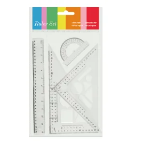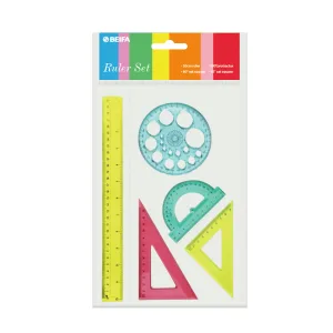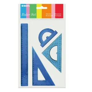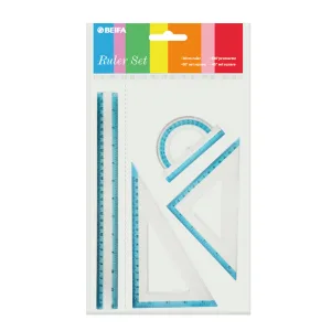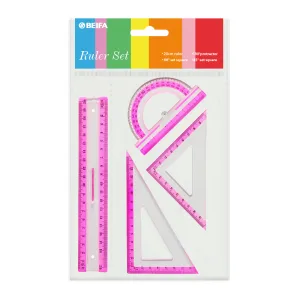 Набор линеек BEIFA BFAPSR-11 в комплекте: 30см линейка, 30°/60° треугольник 18.5см, 45°/45° треугольник 20см, 180° транспортир 10см OPP пакет