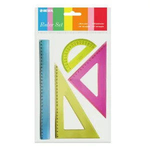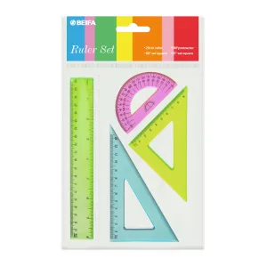Набор линеек BEIFA BFAPSR-13 в комплекте: 20см линейка, 30°/60° треугольник 14.5см, 45°/45° треугольник 10см, 180° транспортир 10см OPP пакет